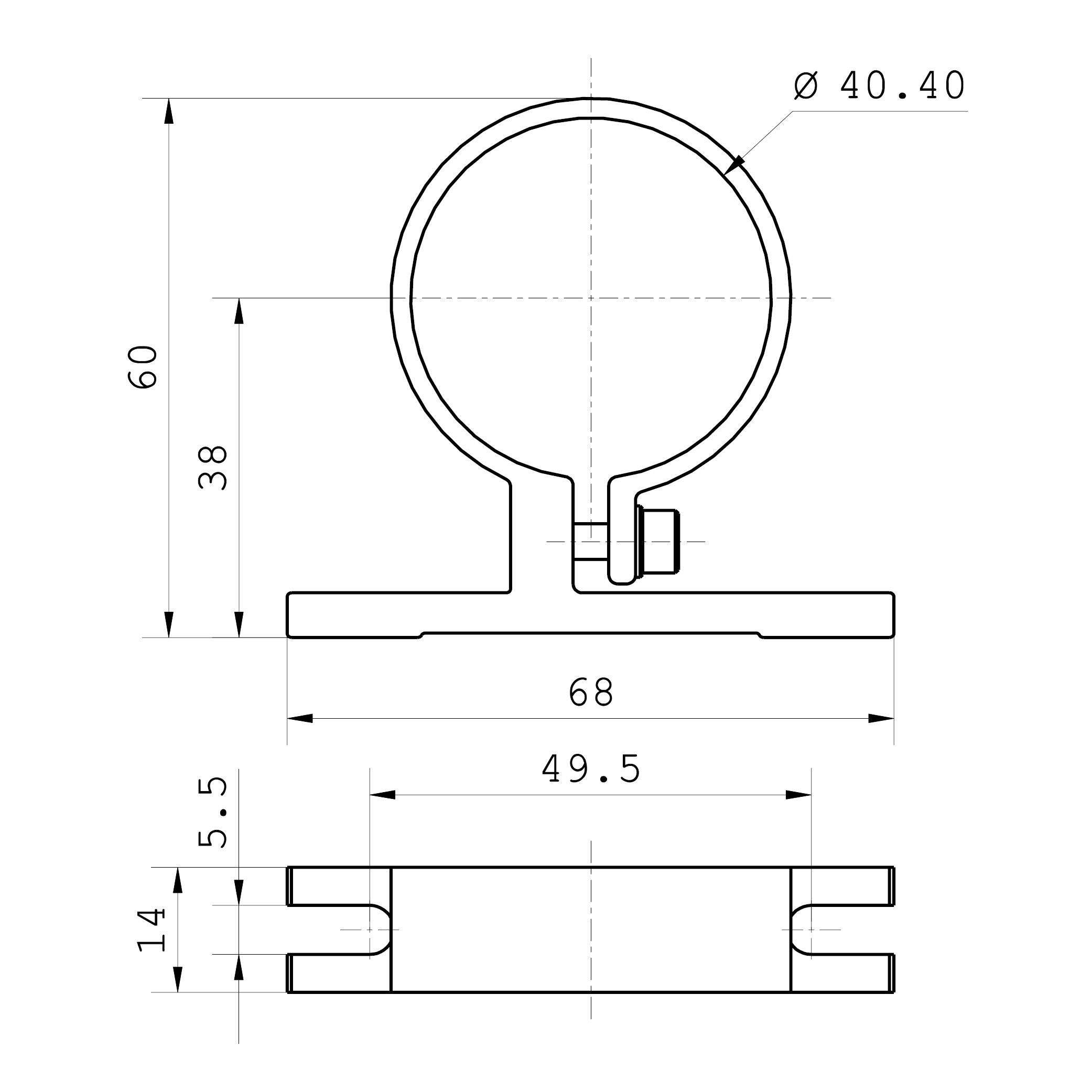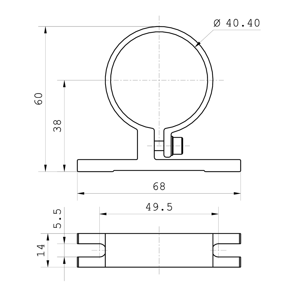 Aluminiums beslag til Maskinlamper i Ø40mm. Nem montering der egner sig til TUBELED_40 og TUBELED_40 RGB-W (210200-06)