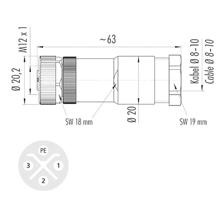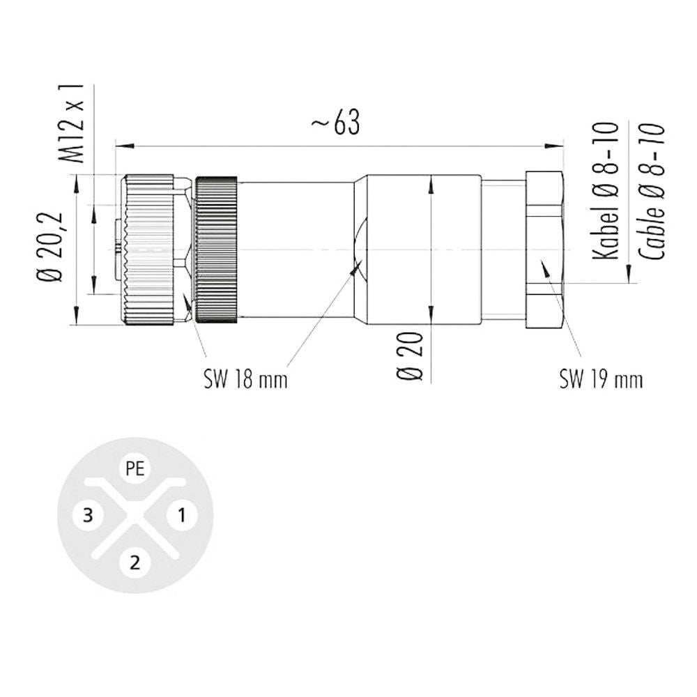 LED2WORK M12 stik beregnet for 110-230Vac produkter:
