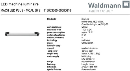 Maskinlampe, MQAL 36 S - 24Vdc MACH LED PLUS (113063000-00580618)