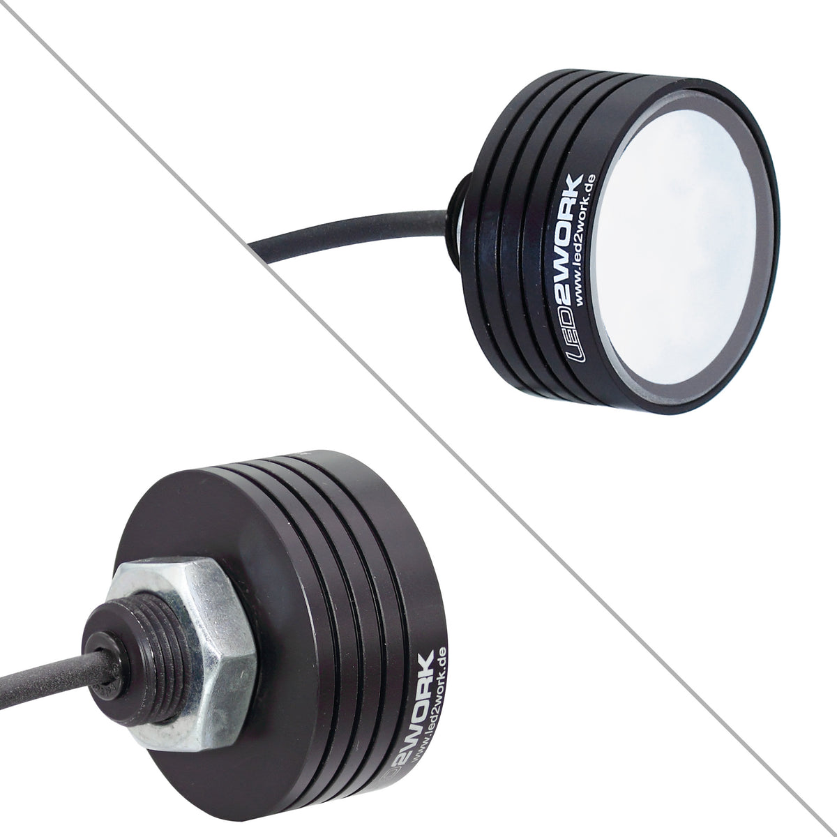 LED2WORK's TOPLED er et meget lille, men ekstremt kraftigt LED-armatur med en diameter på 50 mm – udviklet til brug i værktøjsmaskiner. Da den er egnet til CNC maskiner, kan lampen installeres i umiddelbar nærhed af de emner, der skal bearbejdes. TOPLED leverer kraftig belysning takket være højtydende LED'er. Modstandsdygtig over for køle- og smøremidler. Ideel til barske miljøer.